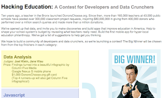 We’ve also talked about how far out of sync our districts are with new media curricula. Hence the cool Tweet he sent today: a way to crowdsource said curricula by asking teachers what they need and offering up micro solutions in the form of apps. From this distance and through my perpetually-at-hand, rose-tinted glasses, this seems like a great premise for workable solutions. In public school districts where admins in charge of tech are usually thinking only of equipment replacement, crowdsourcing seems like an efficient workaround to get some curricular innovation dirt cheap and super efficient. From the “Hacking Education” Contest: